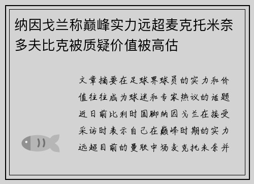 近日,曼城球员津琴科的合同中回避条款生效,导致他无法参加今晚对阵阿森纳的比赛。这一事件引发了球迷和媒体的广泛关注,也让人们对合同条款在足球比赛中的作用有了新的认识。本文将从四个方面深入分析津琴科的合同中回避条款为何生效,回避条款的背景以及它对球队阵容和比赛结果的潜在影响。首先,我们将详细介绍津琴科的回避条款内容及其生效的原因;接着,探讨回避条款在职业足球合同中的普遍性;然后,分析津琴科无法出战对阵...